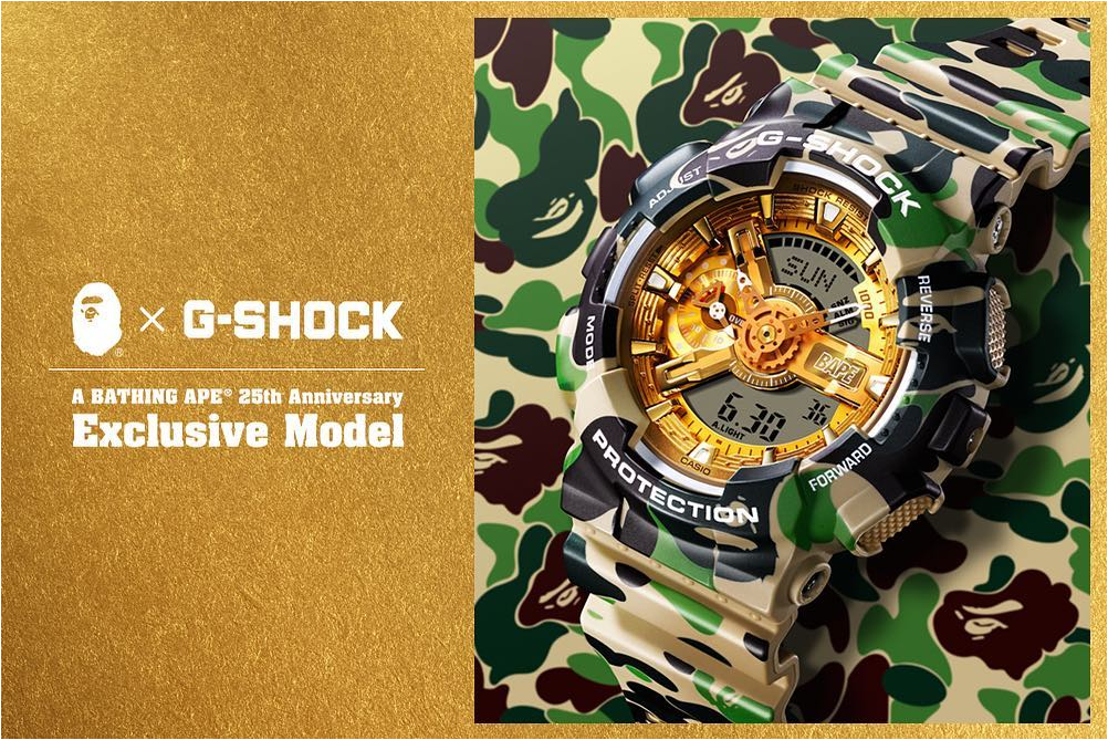 Le 1er octobre 2018 à Paris, à l’occasion des 25 ans de la marque de vêtements A Bathing APE, a été présentée la nouvelle montre issue de la collaboration avec G-SHOCK.