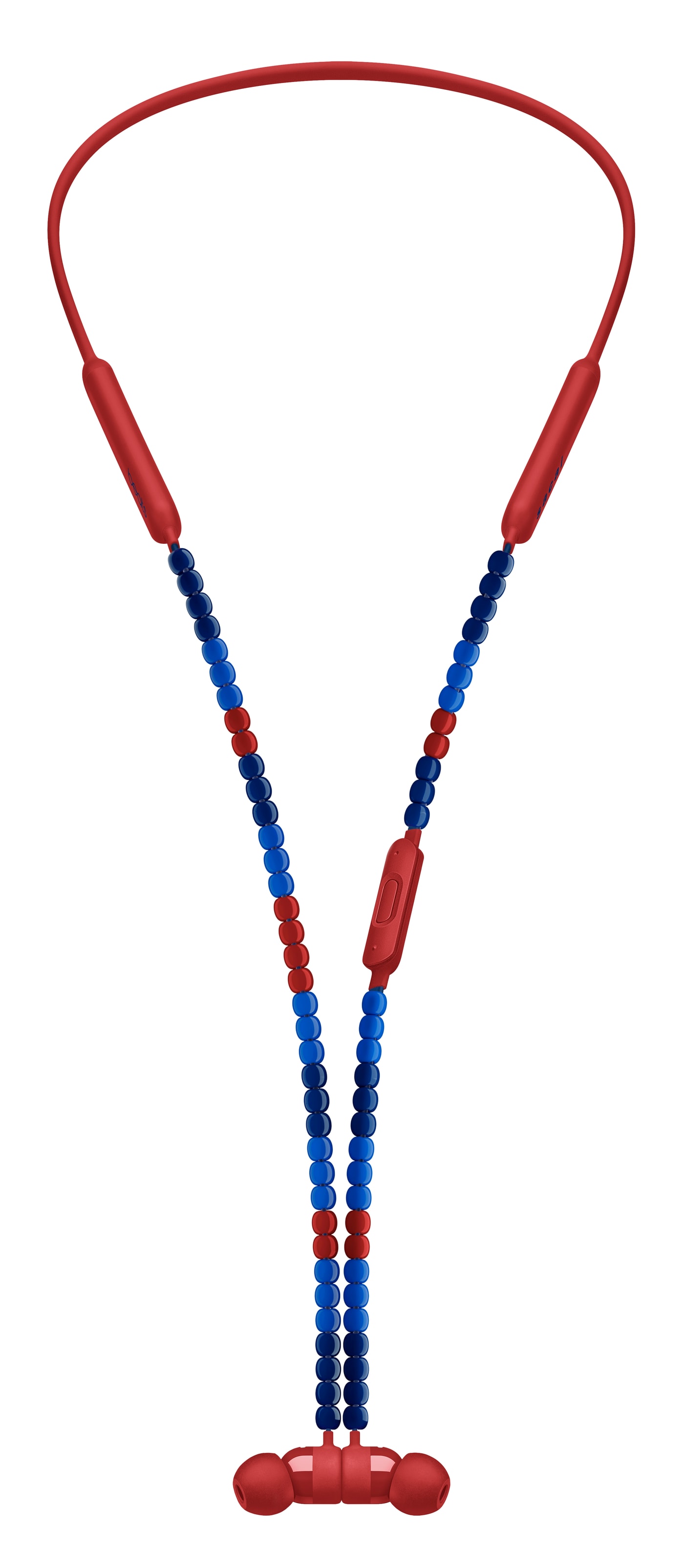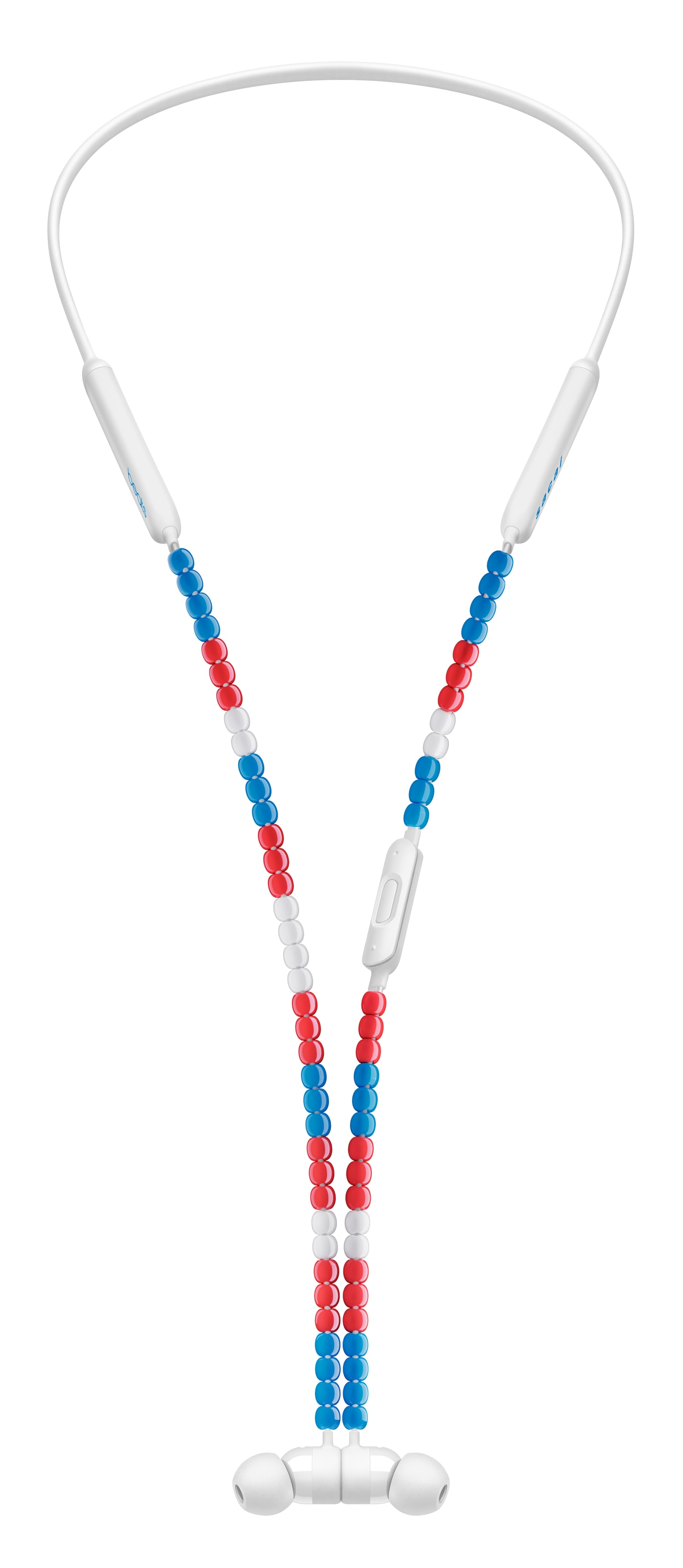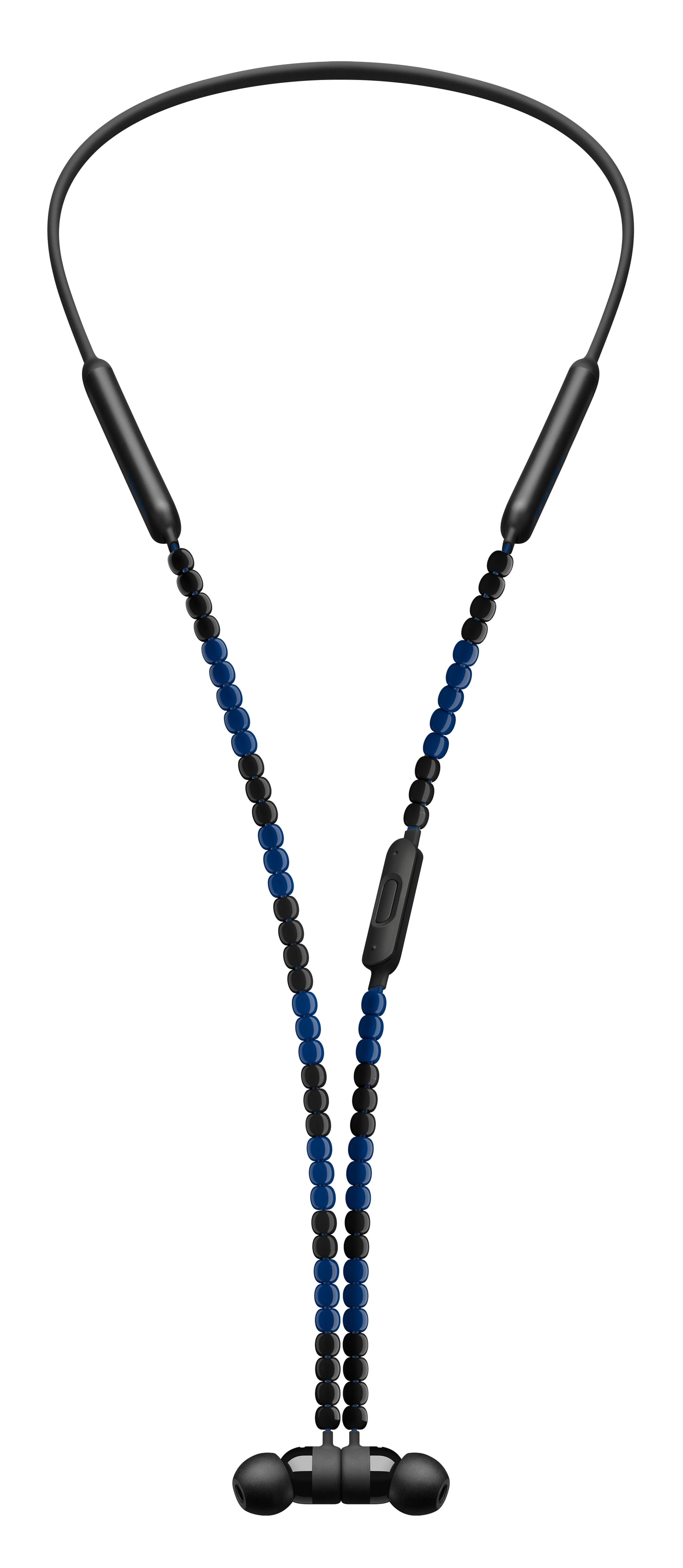 Dans ces clichés, on distingue des écouteurs à perles en trois coloris : rouge vif, blanc profond et noir véritable. Cette collection prend son inspiration à l’aide de bijoux et de perles personnalisables. De plus, ces perles peuvent être portées comme un serre-nuque. Finalement, cet accessoire se rapproche de la mode et est personnalisable.