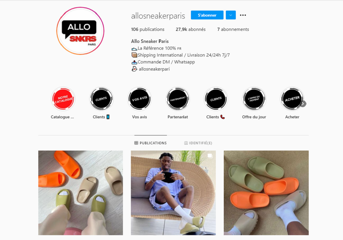 Plusieurs compte Instagram comme allo sneakers propose des sneakers à la vente sur leur compte. L’achat se fait en DM, le compte assure une transaction sécurisée et des paires authentiques mais est-ce bien la vérité ?