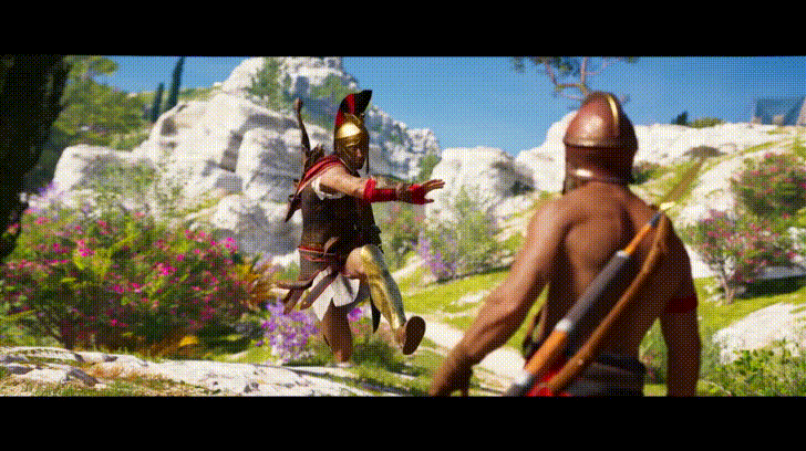 C’est ce genre d’amélioration et de raffinement qui est présent dans Assassin’s Creed Odyssey, et beaucoup plus évident dans les combats. Par exemple, vous pouvez vous rendre rapidement là où se trouve un ennemi et le tuer, utiliser des flèches qui tuent les ennemis à travers les murs et, bien sûr, frapper les soldats du haut d’une corniche avec un puissant coup de pied qui aurait tout à fait à sa place dans le film 300. Il faut ajouter qu’ici, Odyssey conserve le même système de niveaux de style MMO qu’Origins, ce qui signifie que les ennemis qui vous sont supérieurs seront pratiquement invincibles, quelle que soit la qualité de votre combat.